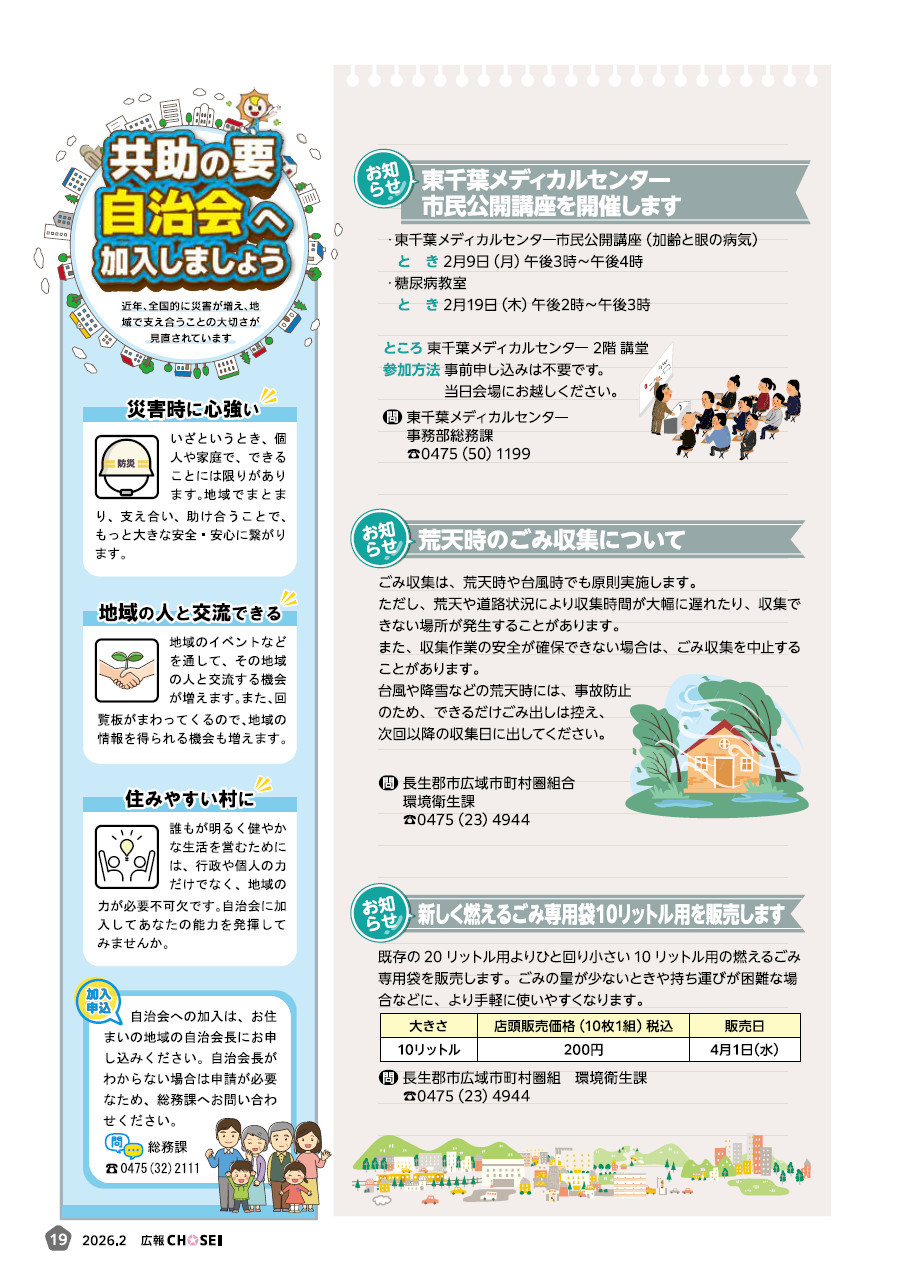 くらし 広報ちょうせい 令和8年2月号 No.568 P.19 19/24 前の記事 次の記事 発行日 : 2026年02月01日 自治体名 : 千葉県長生村 広報紙名 : 広報ちょうせい 令和8年2月号 No.568 Tweet シェアする 広報ちょうせい 令和8年2月号 No.568 P.18 広報ちょうせい 令和8年2月号 No.568 P.20