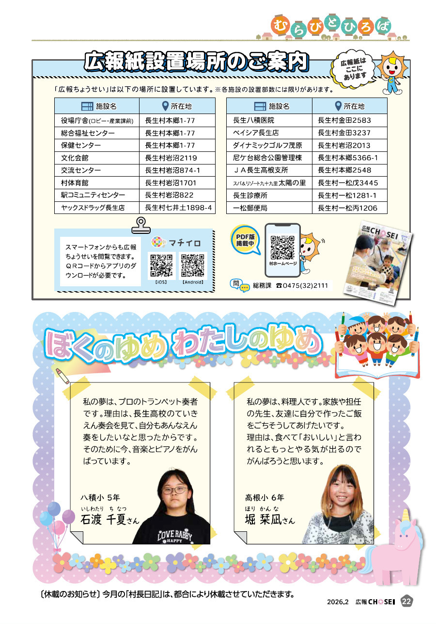 その他 広報ちょうせい 令和8年2月号 No.568 P.22 22/24 前の記事 次の記事 発行日 : 2026年02月01日 自治体名 : 千葉県長生村 広報紙名 : 広報ちょうせい 令和8年2月号 No.568 Tweet シェアする 広報ちょうせい 令和8年2月号 No.568 P.21 広報ちょうせい 令和8年2月号 No.568 P.23