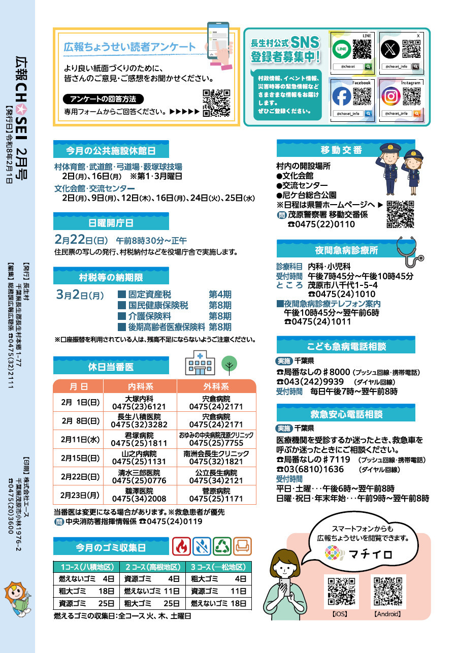 くらし 広報ちょうせい 令和8年2月号 No.568 P.24 24/24 前の記事 発行日 : 2026年02月01日 自治体名 : 千葉県長生村 広報紙名 : 広報ちょうせい 令和8年2月号 No.568 Tweet シェアする 広報ちょうせい 令和8年2月号 No.568 P.23