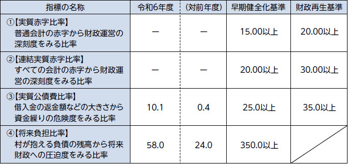 長生村の令和6年度決算に基づく健全化判断比率及び資金不足比率について「地方公共団体の財政の健全化に関する法律」の規定により、次のとおり公表します。
