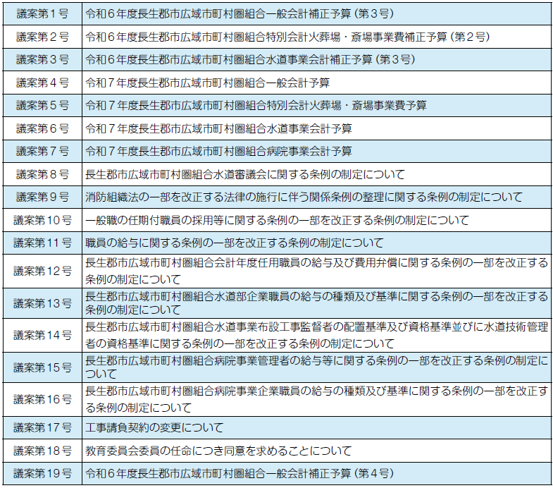 令和7年第1回長生郡市広域市町村圏組合議会定例会は2月4日に開会し、25日までの22日間で以下の議案について審議し、閉会しました。