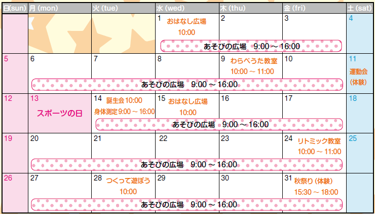 ※あそびの広場の時間帯が変更になる場合がありますので、支援センターだよりと併せてご確認ください。