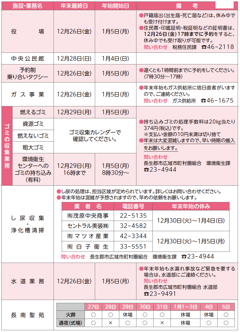 くらし 年末年始の業務日程 12/47 前の記事 次の記事 発行日 : 2025年12月01日 自治体名 : 千葉県長南町 広報紙名 : 広報ちょうなん 令和7年12月号 Tweet シェアする 12/18(木) 町長室開放のお知らせ 令和8年度 長南町放課後児童クラブ利用の申し込みを受け付けます