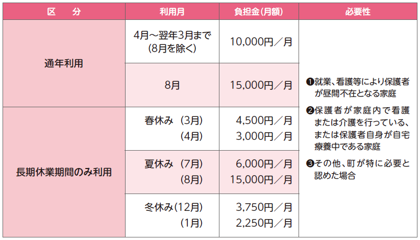 ※同一世帯で2人以上利用する場合の2人目以降のお子さん、および父子・母子家庭のお子さんについては、負担金が半額となります。