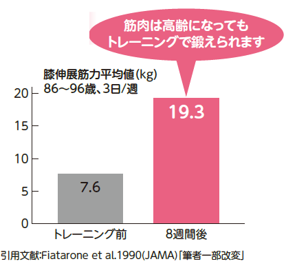 しかし、痩せた筋肉はトレーニングを継続することにより筋線維が太くなり、力も発揮できるようになります。この現象は年齢・性差には関係なく強化されます(下図)。