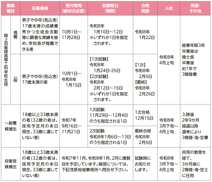 ※詳しくは自衛隊茂原地域事務所までお問い合わせ下さい。