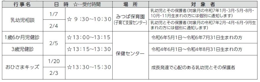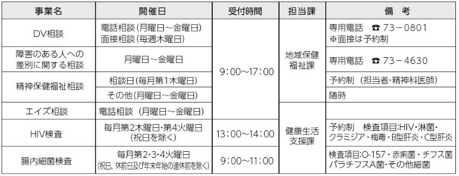 問合せ:〒299-5235 勝浦市出水1224 夷隅健康福祉センター