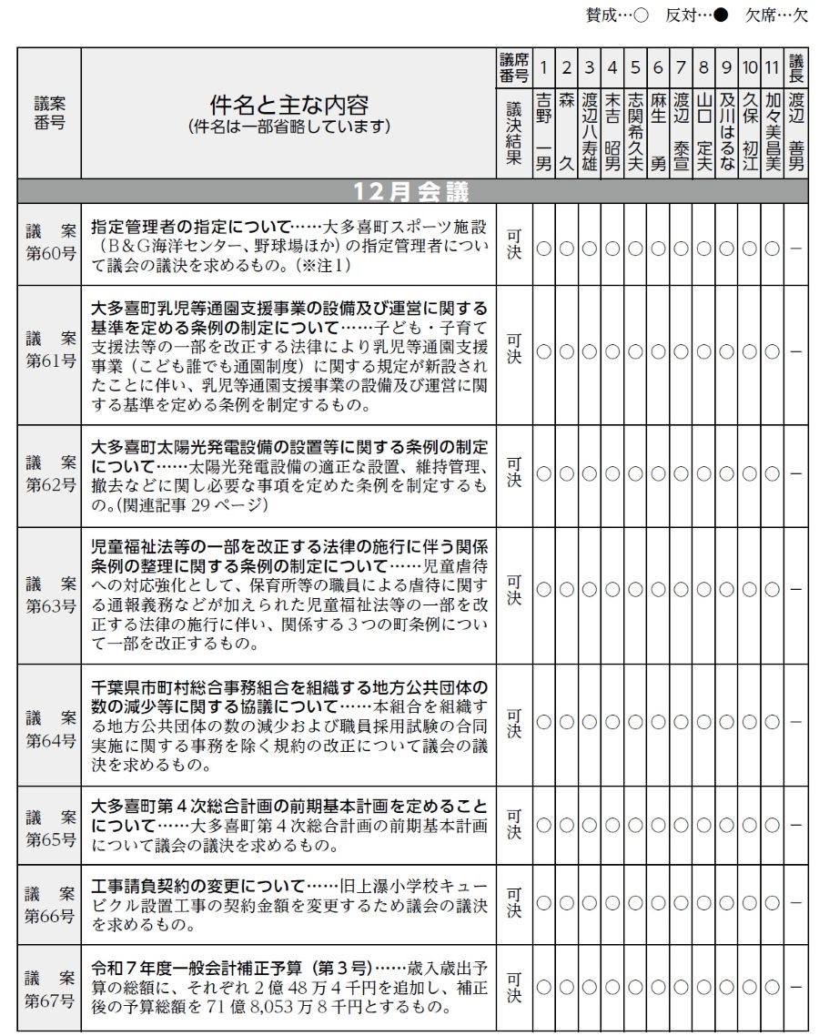 渡辺善男議長は議事進行のため、採決には加わりません。