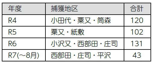 また捕獲後の調査で、地域の方々から農業被害や目撃数が減ったという報告を頂いています。