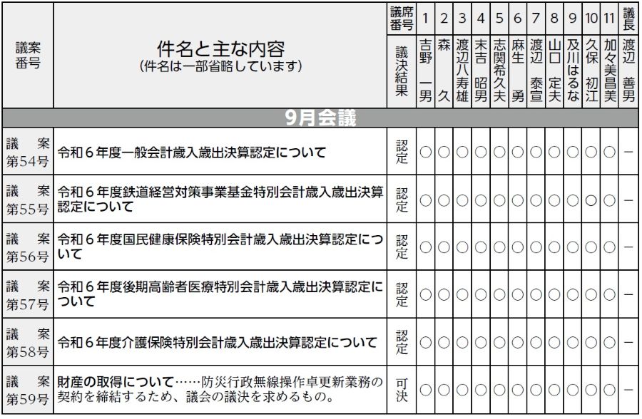 くらし おおたき議会だよりNo.124 審議結果 41/51 前の記事 次の記事 発行日 : 2025年10月24日 自治体名 : 千葉県大多喜町 広報紙名 : 広報おおたき 2025年11月号(NO.686) 渡辺善男議長は議事進行のため、採決には加わりません。 賛成…○ 反対…● 欠席…欠 Tweet シェアする おおたき議会だよりNo.124 令和6年度一般会計決算 おおたき議会だよりNo.124 報告