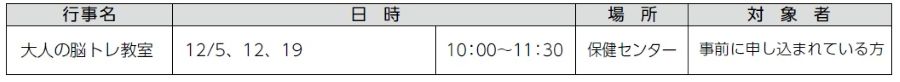 健康事業の予定をおしらせします。