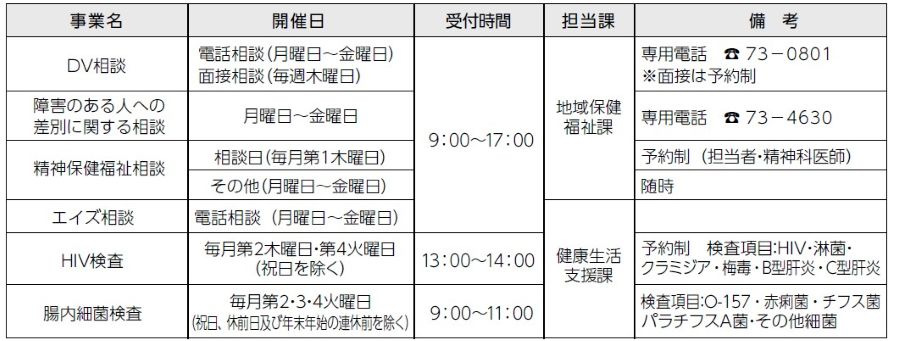 ■夷隅保健所 健康相談等日程表
