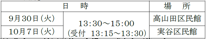 申込・締切日:10月8日(水)までに氏名、住所、電話番号を公民館までお知らせください。
