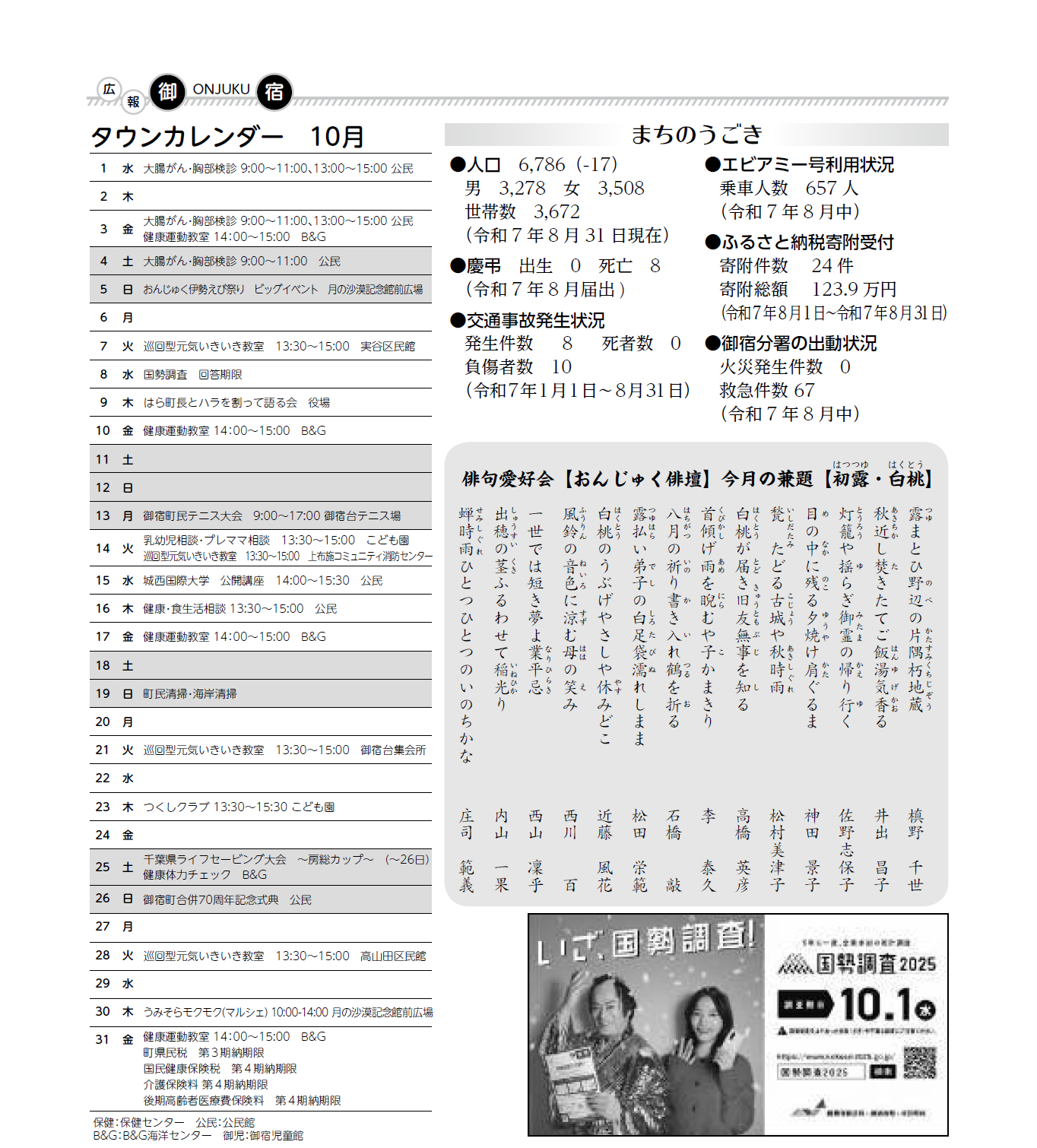 くらし おんじゅく広報 令和7年9月号 P.13 10/11 前の記事 次の記事 発行日 : 2025年09月25日 自治体名 : 千葉県御宿町 広報紙名 : おんじゅく広報 令和7年9月号 Tweet シェアする おんじゅく広報 令和7年9月号 P.12 おんじゅく広報 令和7年9月号 P.14