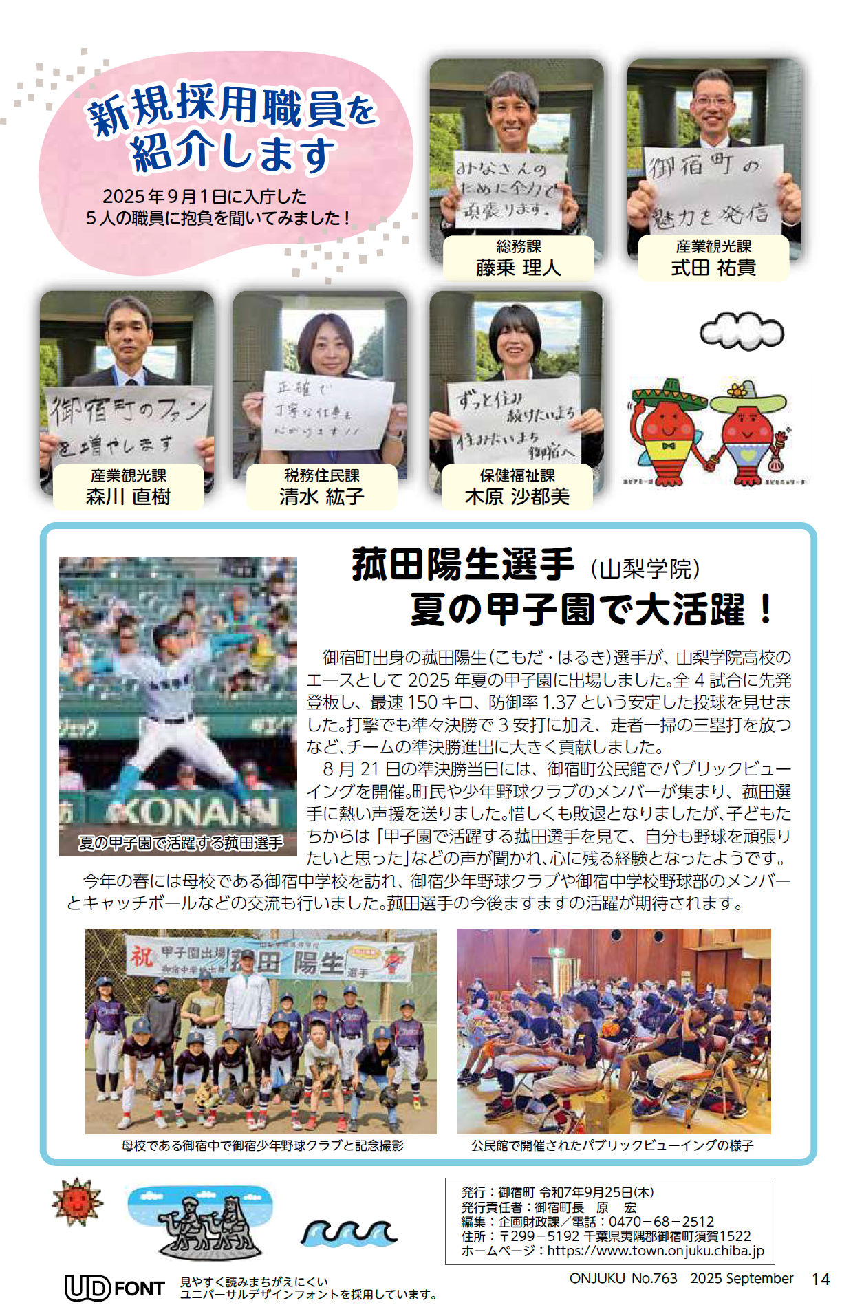 くらし おんじゅく広報 令和7年9月号 P.14 11/11 前の記事 発行日 : 2025年09月25日 自治体名 : 千葉県御宿町 広報紙名 : おんじゅく広報 令和7年9月号 Tweet シェアする おんじゅく広報 令和7年9月号 P.13