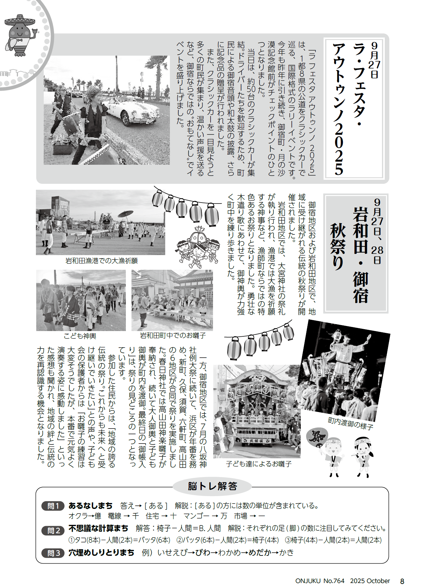 くらし おんじゅく広報 令和7年10月号 P.8 7/11 前の記事 次の記事 発行日 : 2025年10月25日 自治体名 : 千葉県御宿町 広報紙名 : おんじゅく広報 令和7年10月号 Tweet シェアする おんじゅく広報 令和7年10月号 P.7 おんじゅく広報 令和7年10月号 P.9