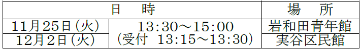 場所:御宿町公民館 2階視聴覚室(先着20名)
