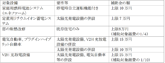 地球温暖化防止の推進及び電力の強靭化を図るため、環境への負荷が少ない住宅用設備等を導入する方に対し、導入費の一部を補助しています。