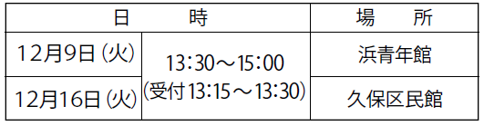 申込方法:12月17日(水)までに、公民館にお名前、住所、ご連絡先をお知らせください。