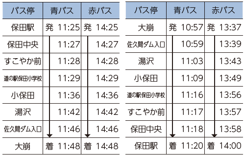 ▽臨時便時刻表 大崩~保田駅間折り返し運行