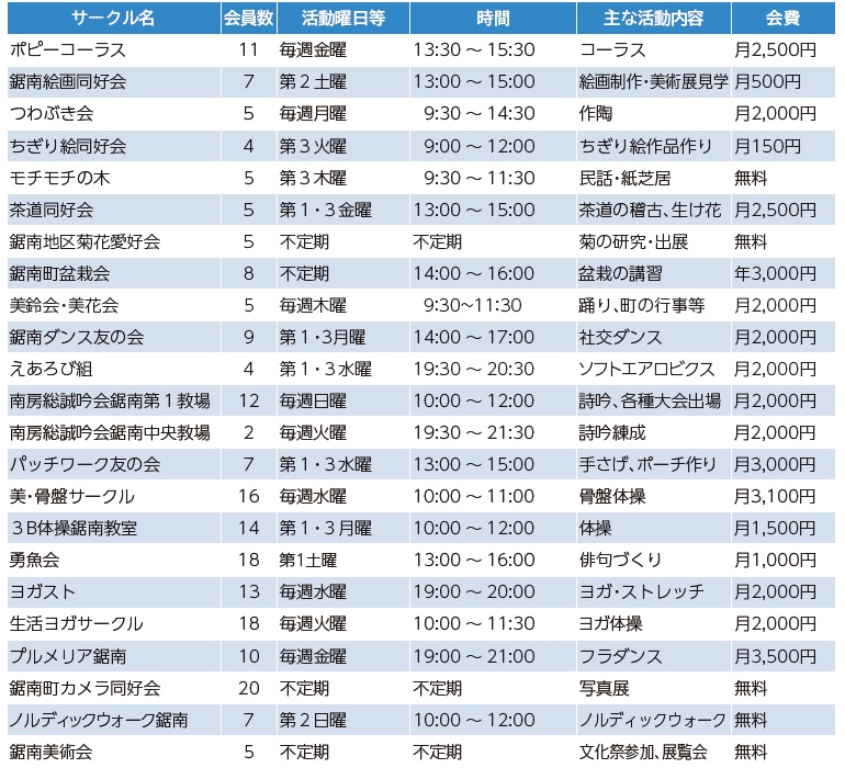 中央公民館で活動し、新会員を募集しているサークルを紹介します。どのサークルも新会員大歓迎!!興味のあるサークルがありましたら、遠慮なくお問い合わせ下さい。