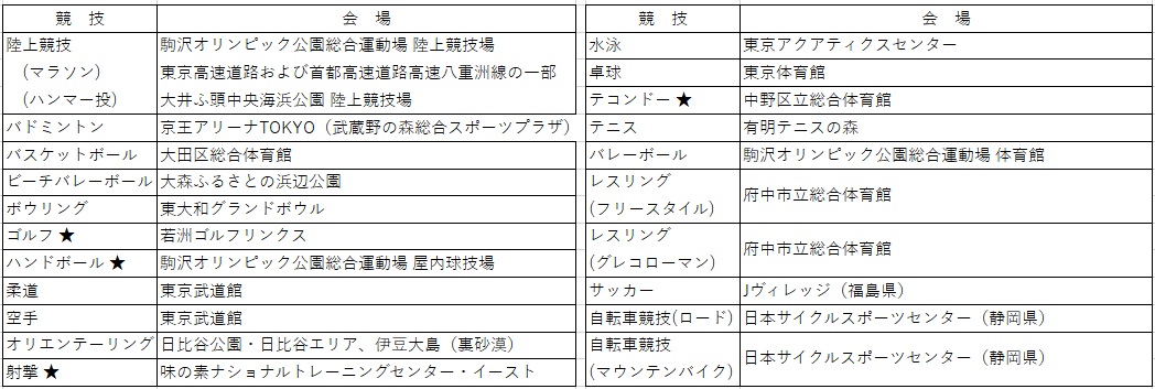 ★:日本初出場の競技