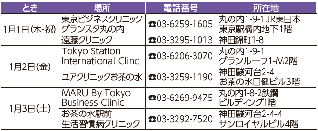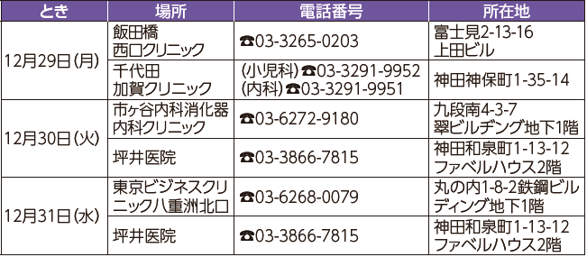 ※調剤薬局は、千代田保健所以外の薬局でも当番制で開設。詳しくは、区HP参照