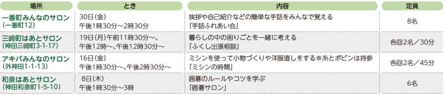 ※各サロンは週2日~3日開室。このほかにもいろいろなプログラムあり