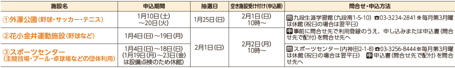 (1)野球・サッカー…3月1日(日)・15日(日)(少年野球優先抽選枠。抽選後の空き枠は利用可)