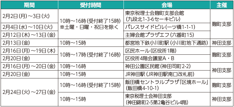 ◇神田支部(法人税・所得税・消費税・相続税・贈与税および譲渡所得)