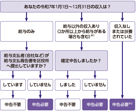 ※1 公的年金などの収入金額が400万円以下で、公的年金等に係る雑所得以外の所得金額が20万円以下の方も申告が必要