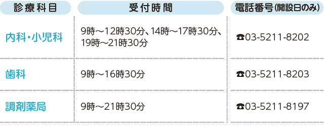 その他:会計の取り扱いは現金のみ。調剤薬局は、千代田保健所以外の薬局でも当番制で開設。詳しくは、区のHPを参照