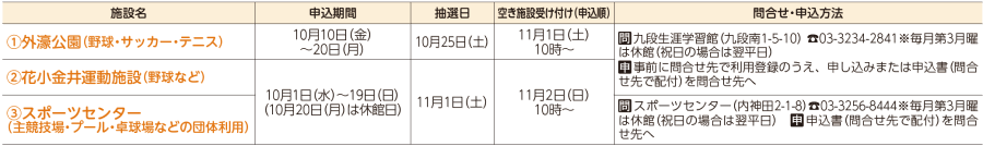 ※このほかにも区の事業などのため、利用できない場合あり。詳しくは各問合せ先へ