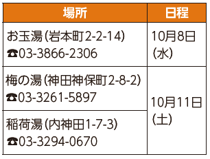 区内の公衆浴場では、10月10日(金)の銭湯の日にちなんでラベンダー湯を行います。小学生以下は無料です。