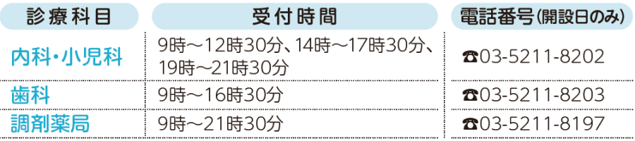 その他:会計の取り扱いは現金のみ。調剤薬局は、千代田保健所以外の薬局でも当番制で開設。詳しくはHPを参照