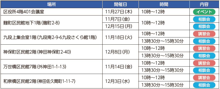 ◇11月~12月のスケジュール(令和8年1月以降も順次開催)