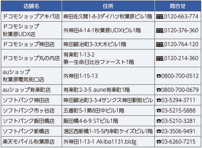 ・申請期間内に指定店舗(右表※下記参照)で自ら使用する目的で初めてスマートフォンを購入し、通信契約を行う(ガラケー、NFC認証機能のないOS[iOS15以下またはAndroid8以下のOSのスマートフォンからの機種変更契約も対象])