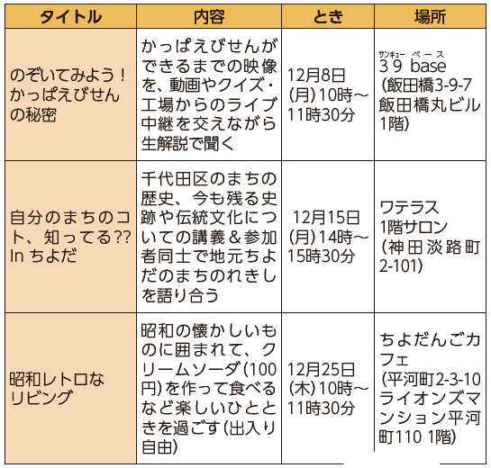 地域の人が出会い、学びやおしゃべりを通じて、地域の情報を知ったり、交流を楽しめる場所です。