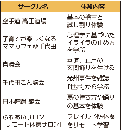 区立施設で活動する区民サークルの「サークル体験会」を開催します。詳しくは、区立施設の掲示ポスターやHPで確認を