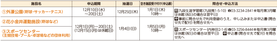 (1)野球・サッカー…2月1日(日)・15日(日)(少年野球優先抽選枠。抽選後の空き枠は利用可)