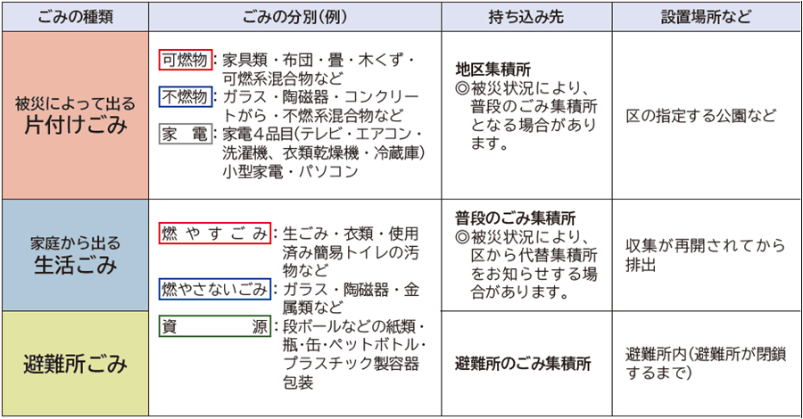 また、生活ごみは、被災状況にもよりますが、各家庭で約3日間の保管をお願いします。