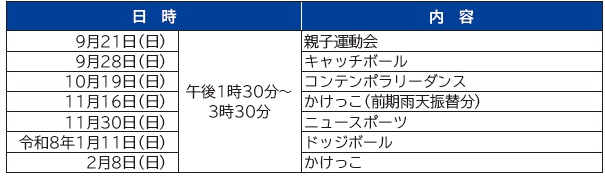 日時:安全性を考え、従来の校庭(遊び場)開放と日時を分けて実施します。
