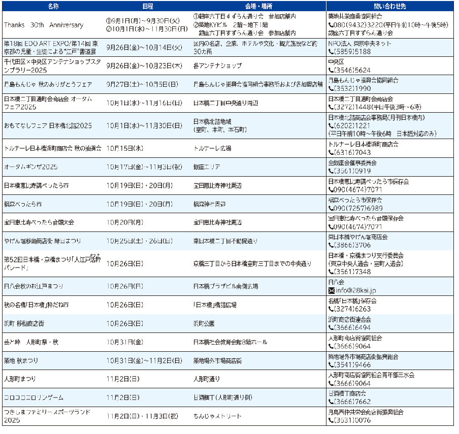 問合せ:中央区観光商業まつり実行委員会事務局(商工観光課内)