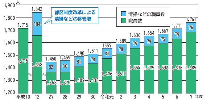 ◎職員数は一般職に属する職員で、休職者、派遣職員などを含み、会計年度任用職員(パートタイム)を除く。