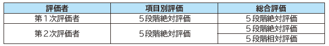 評価の区分は「能力評価」、「業績評価」および「総合評価」です。