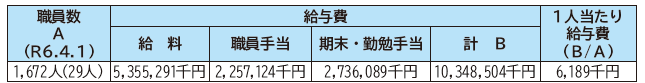 ◎一人当たりの給与費の数値は、上記Bを暫定再任用短時間勤務職員および定年前再任用短時間勤務職員を含まない人数で除したもの