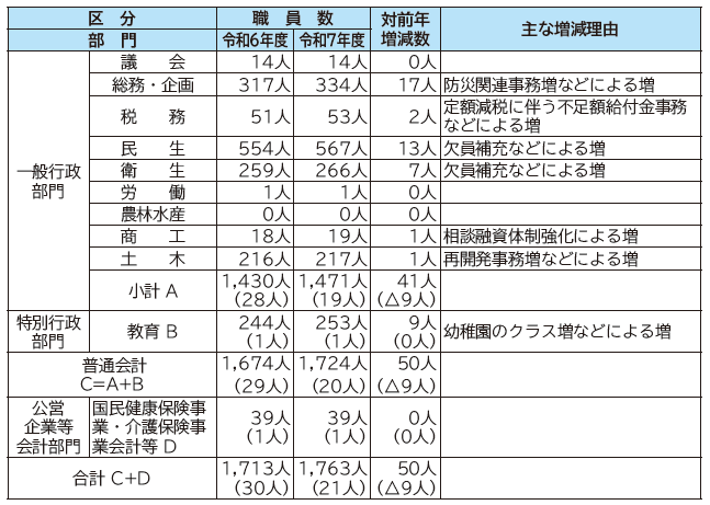 ◎職員数の( )内は、暫定再任用短時間勤務職員および定年前再任用短時間勤務職員であり、外書き