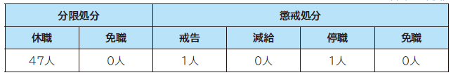 職員が一定の事由により、その職務を十分に果たせない場合などに、休職、降任などの分限処分を行います。また、職員に法令違反などの一定の義務違反があった場合に、免職、停職、減給などの懲戒処分を行います。