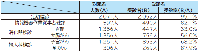 「労働安全衛生法」や行政指導などにより各種健康診断を行っています。