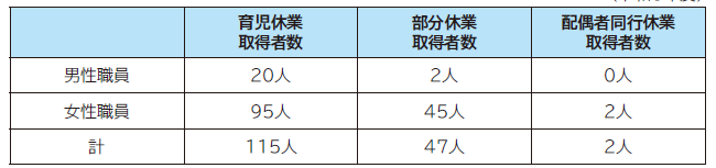 ○3 育児休業、部分休業および配偶者同行休業の取得状況